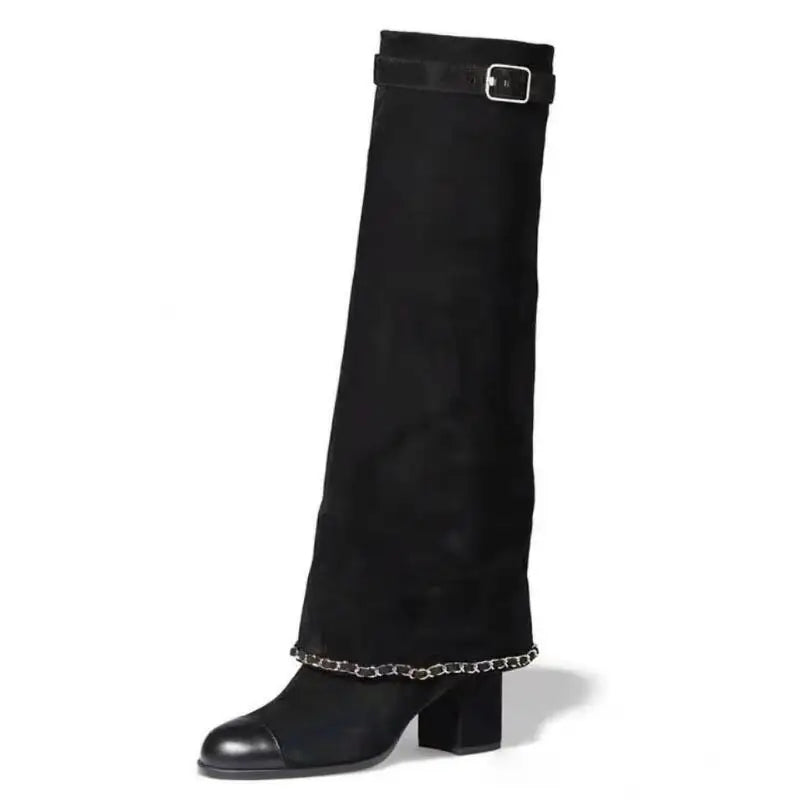Botas femininas de salto alto grosso, estilo europeu e americano, moda outono inverno, bico redondo, costura de couro