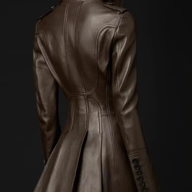 Blazer feminino de couro sintético com saia café e manga comprida, estilo trespassado, moda europeia