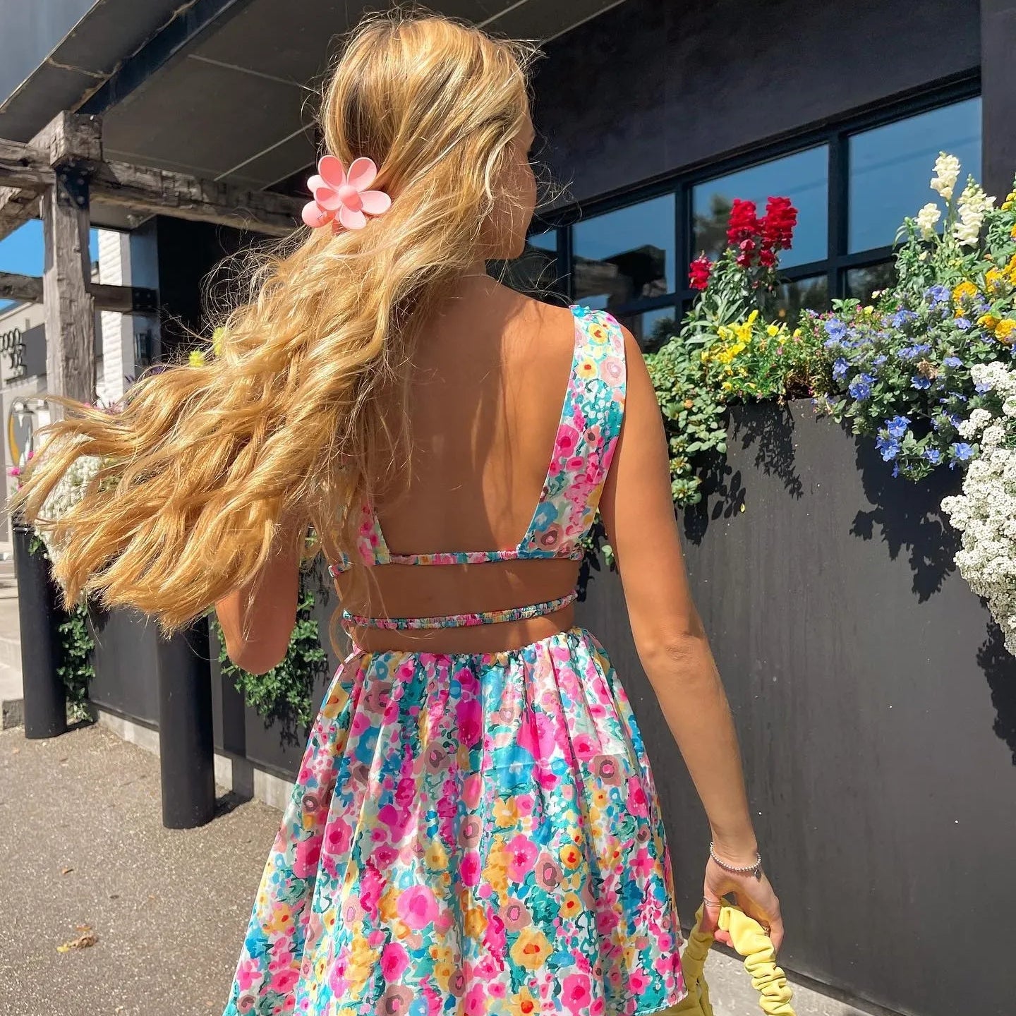 Vestido curto feminino sem mangas, decote em V, costas nuas, estampa floral, vestido de festa para clube de verão