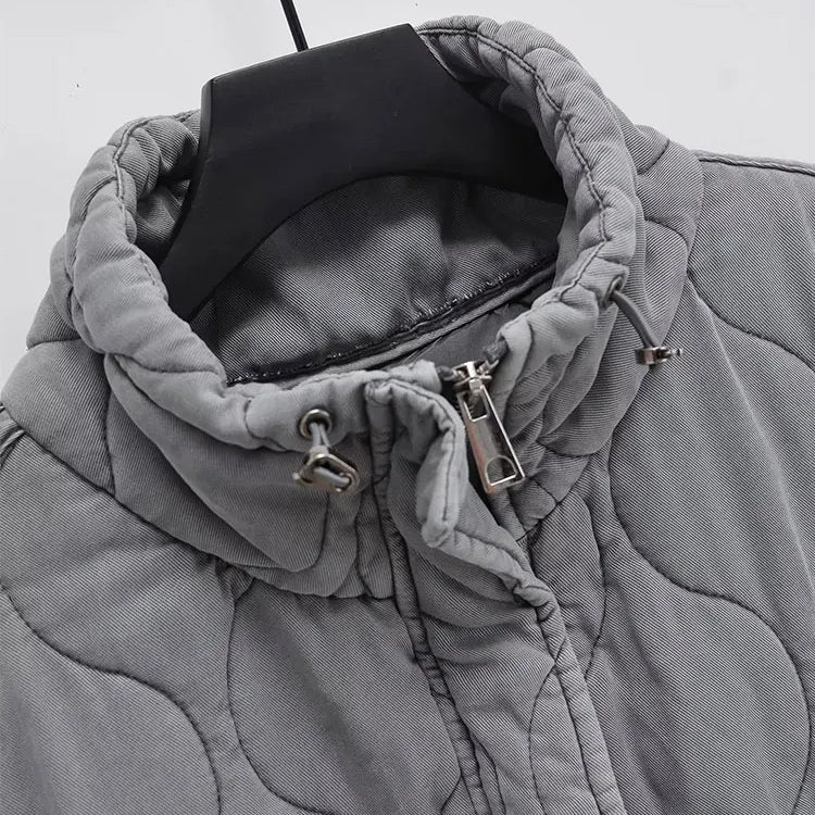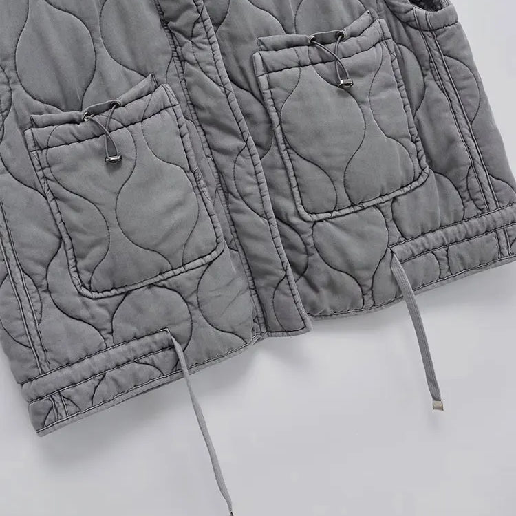 Outono inverno feminino gola de pé leve sem mangas casaco de algodão colete feminino bolso decoração tanque superior