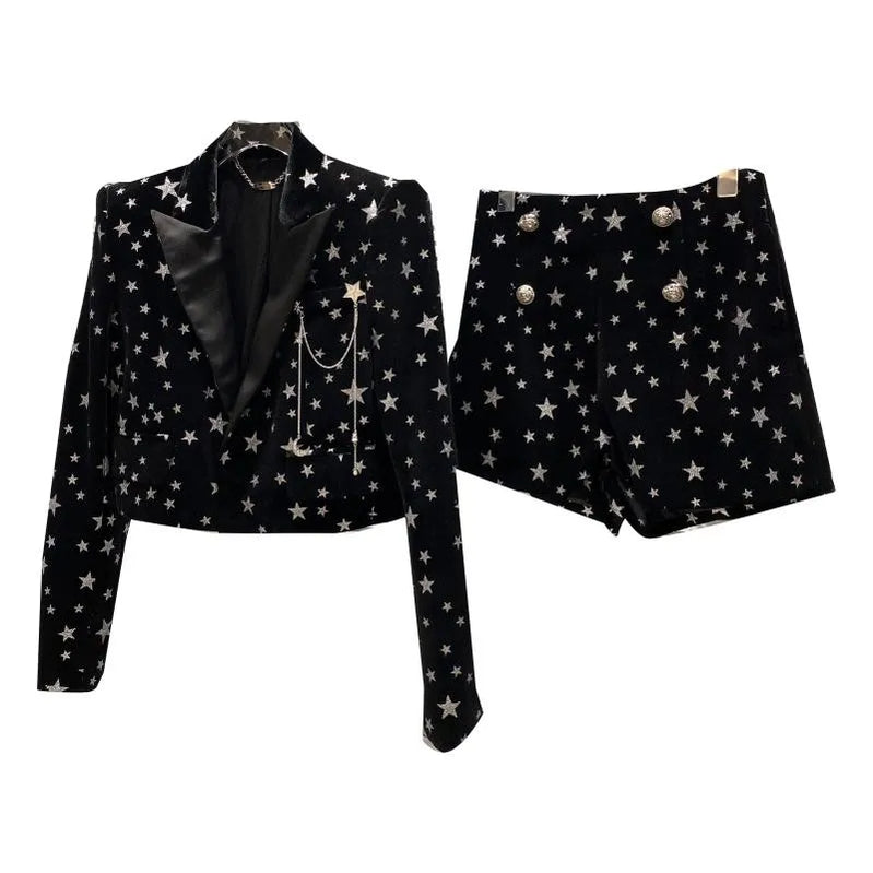 Outono manga longa pino corrente fino veludo blazer casual shorts conjunto de duas peças roupas femininas