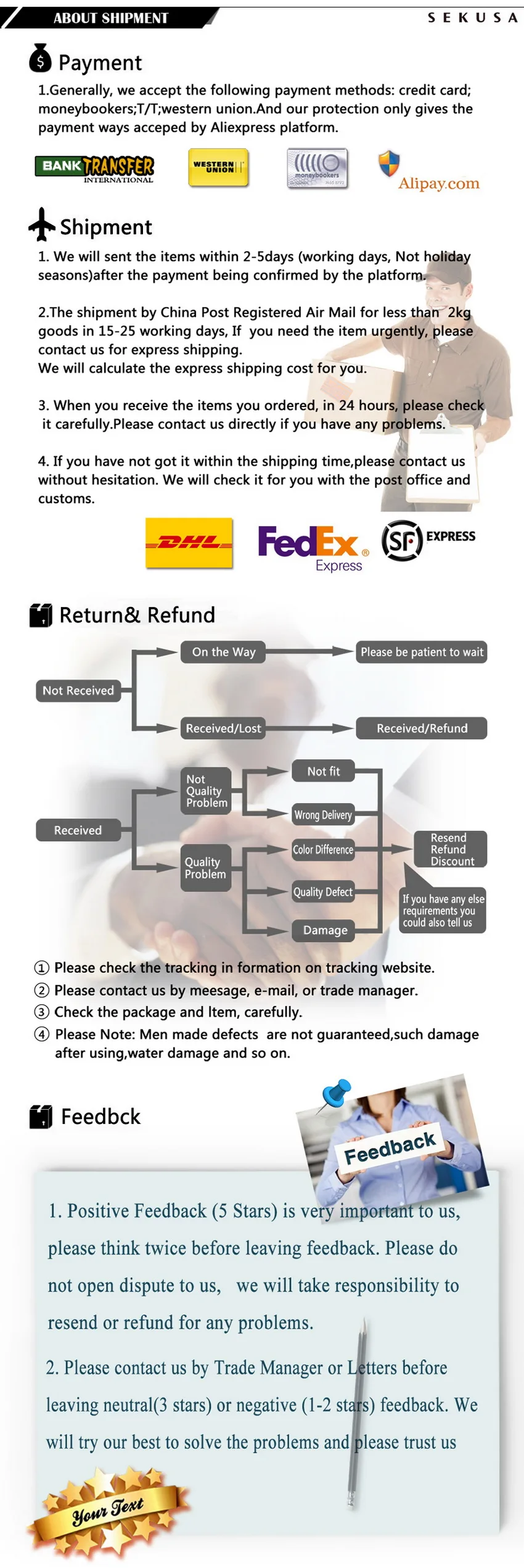 - Todos os produtos devolvidos serão totalmente reembolsados, desde que não tenham sido usados ou danificados.