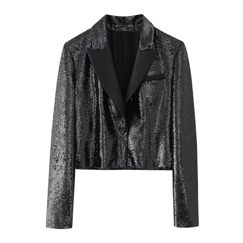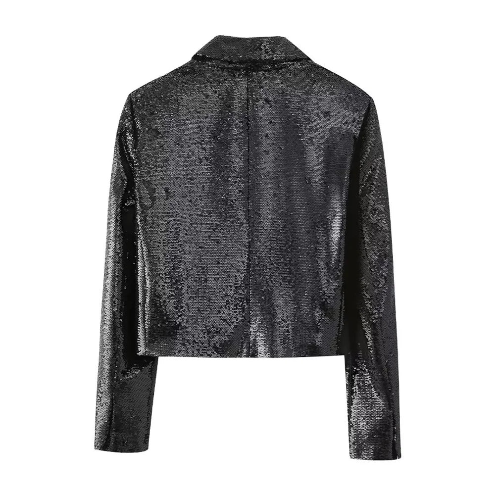Casaco curto com gola polo e contas, moda outono/inverno feminina e casual