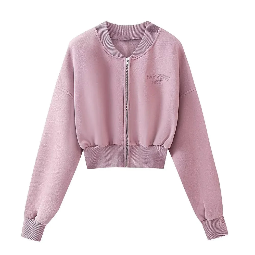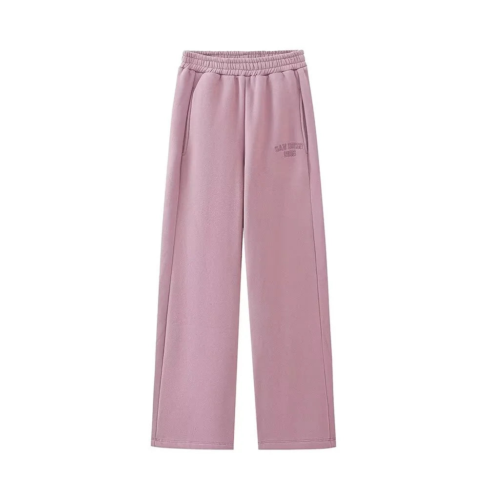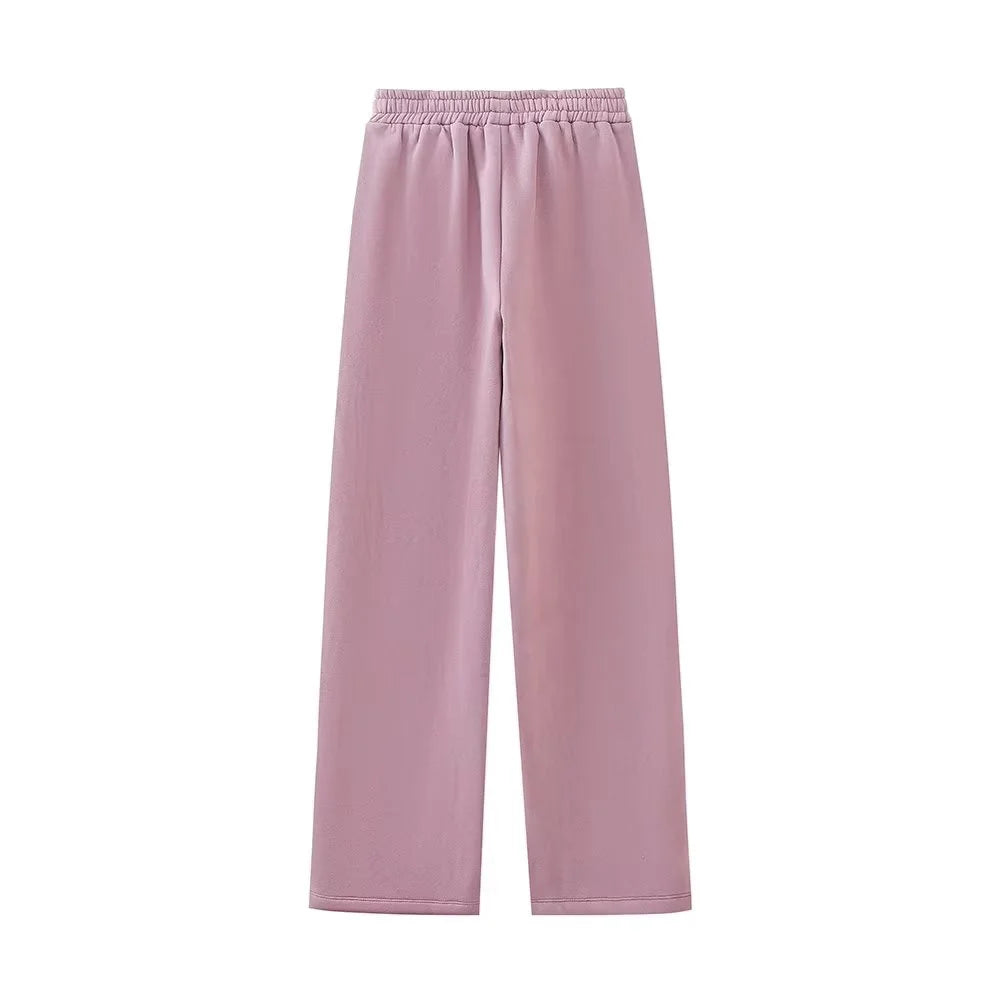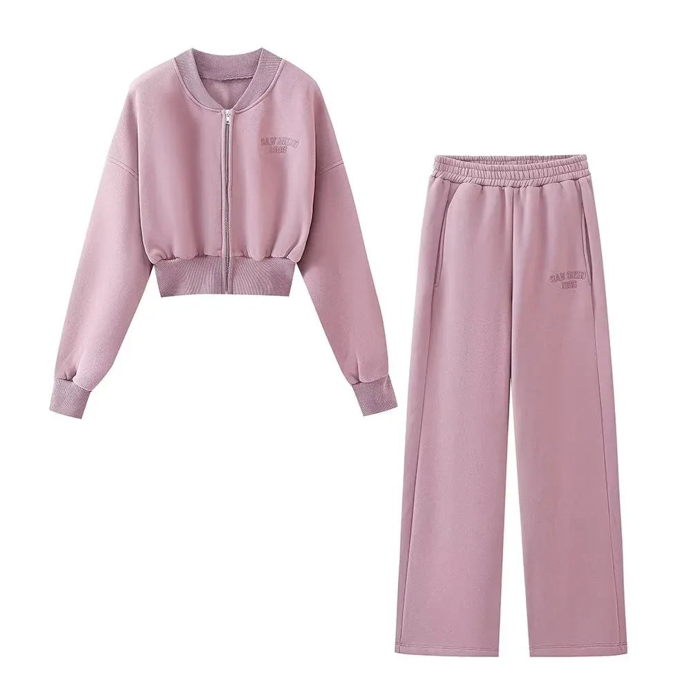 Outono/inverno moda feminina casual bordado zíper solto suéter calças de perna larga conjunto