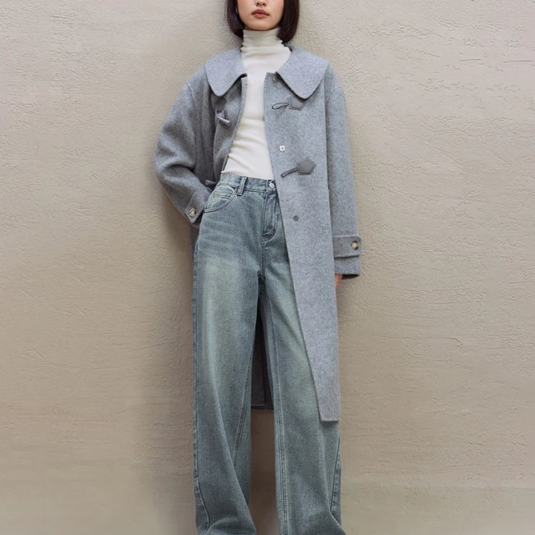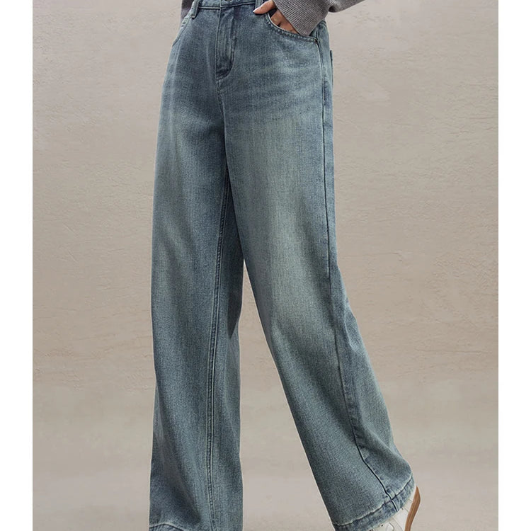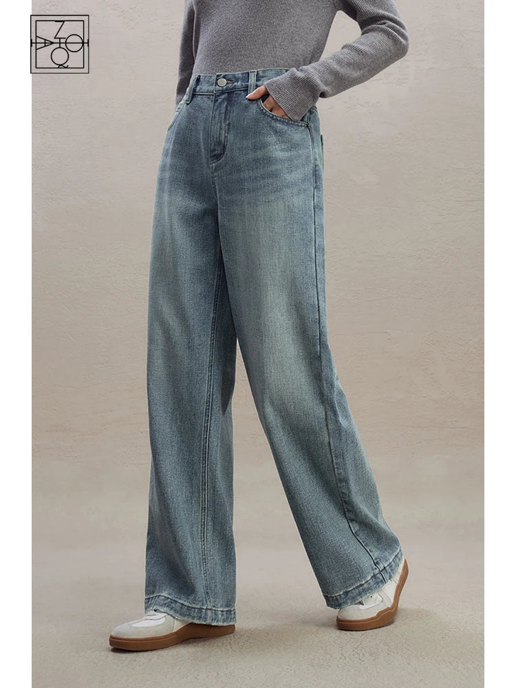 Calça jeans feminina casual, cintura alta, retrô, reta, perna larga, estilo lavado, solta, para esfregar o chão