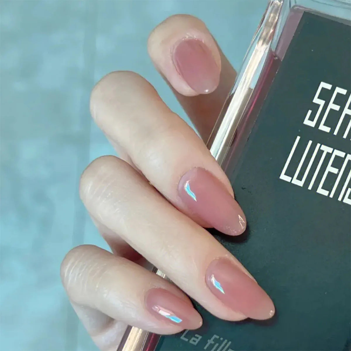 24pcs/set nude fake nails long french almond coffin tips pink grey brown fall Winter decoration faux ongles press on false nail
