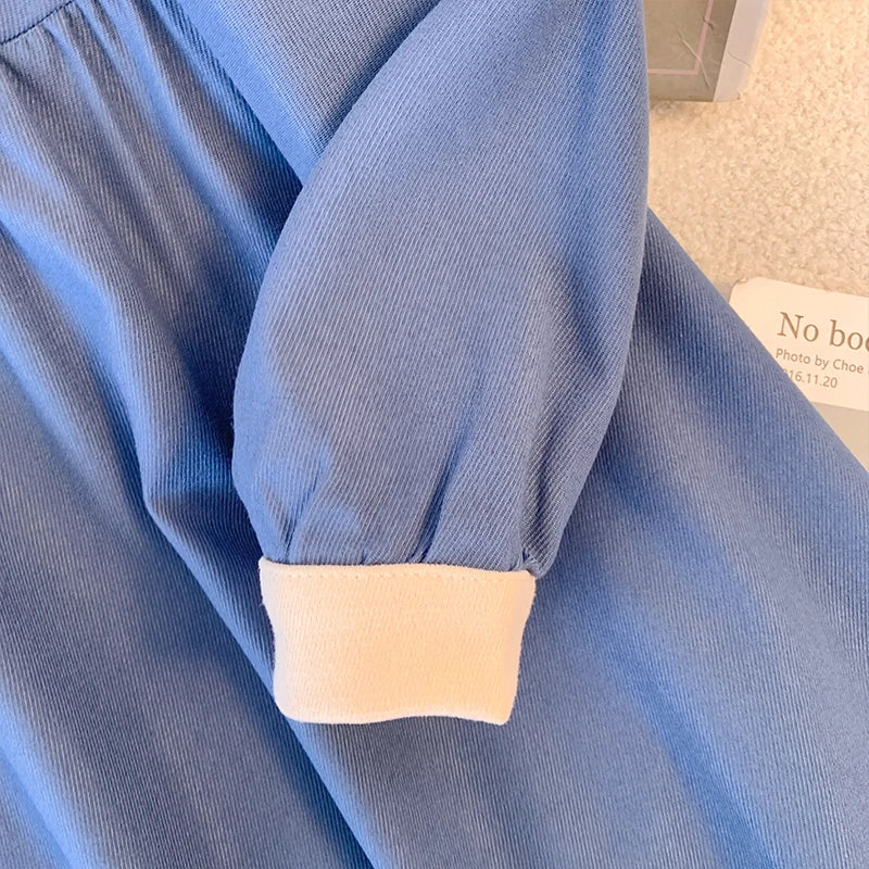 Plus Size Woman Preppy spring and autumn dress bow design girly commuter dress Graduation dress 5X-large, 6X-large blue.