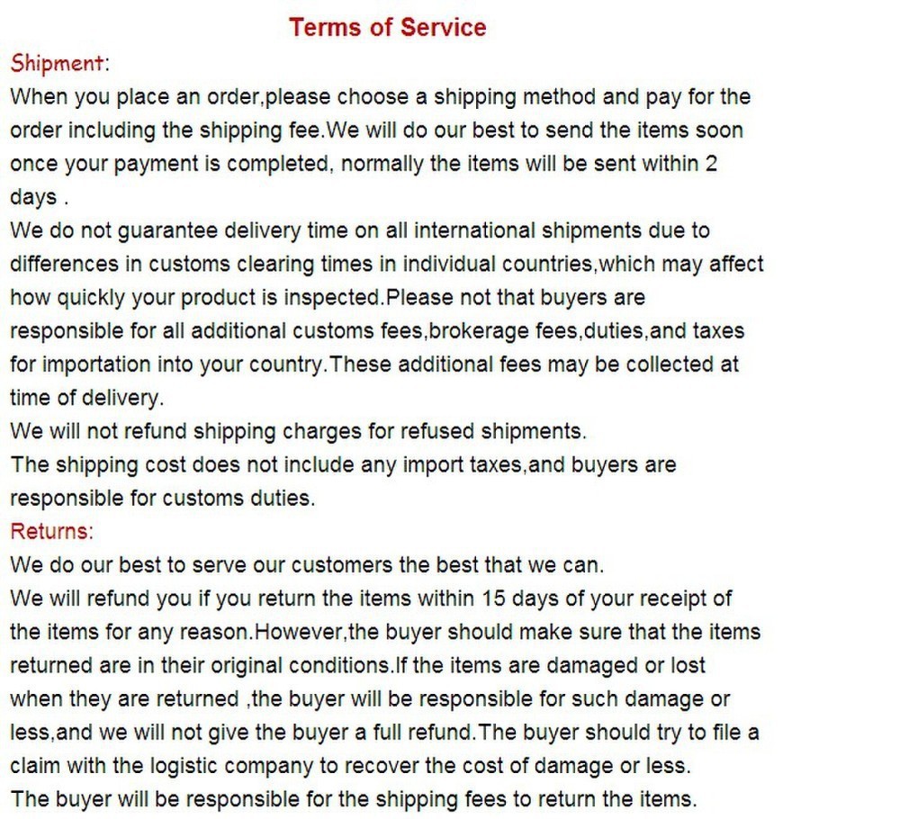 - All returned products will be fully refunded as long as they have not been used or damaged.